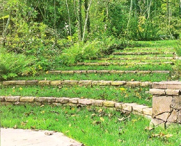 The backbone of the garden is a continuous path of varied walking surfaces and garden pathways that flow from the house down the slope.